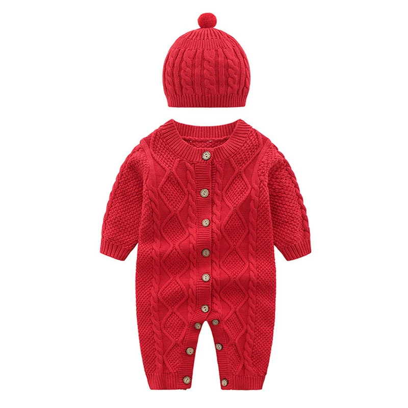 IYEAL Newborn Baby Boy Girl Christmas Costume Cotton Knitted Baby Rompers With Hat 2PCS Winter Craw