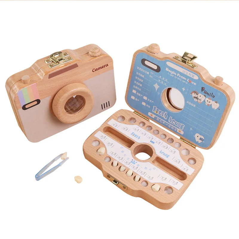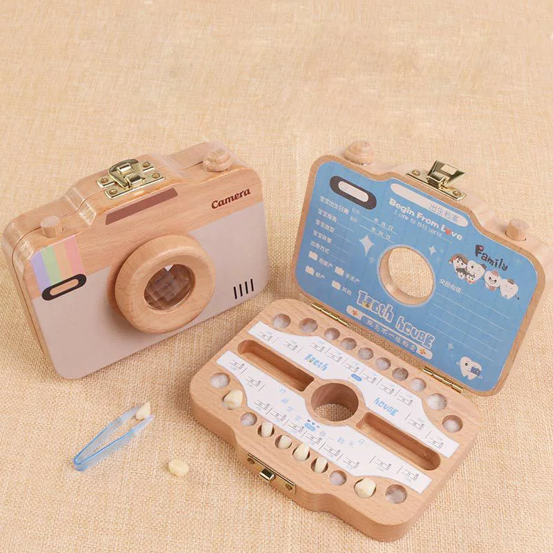 ORIGINAL Children Camera Shape Tooth Box Teeth Storage Box Wooden Organizer Case for Baby Save Milk Teeth Gr