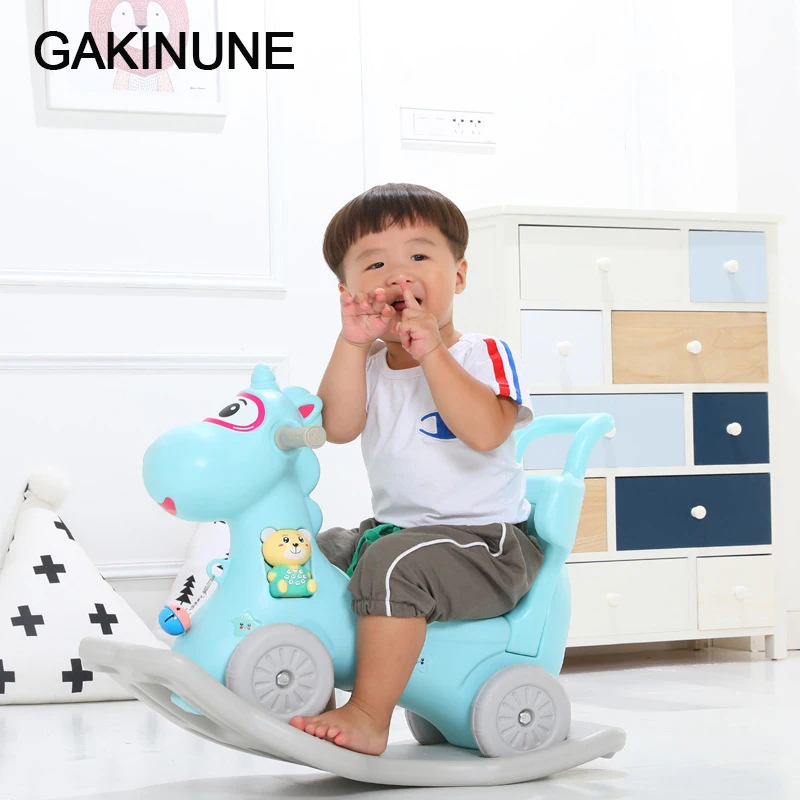 GAKINUNE Children Unicorn Rocking Horse for Toddlers Trojan Horse Dual Use Baby Ride On Toys 1-3 Ye